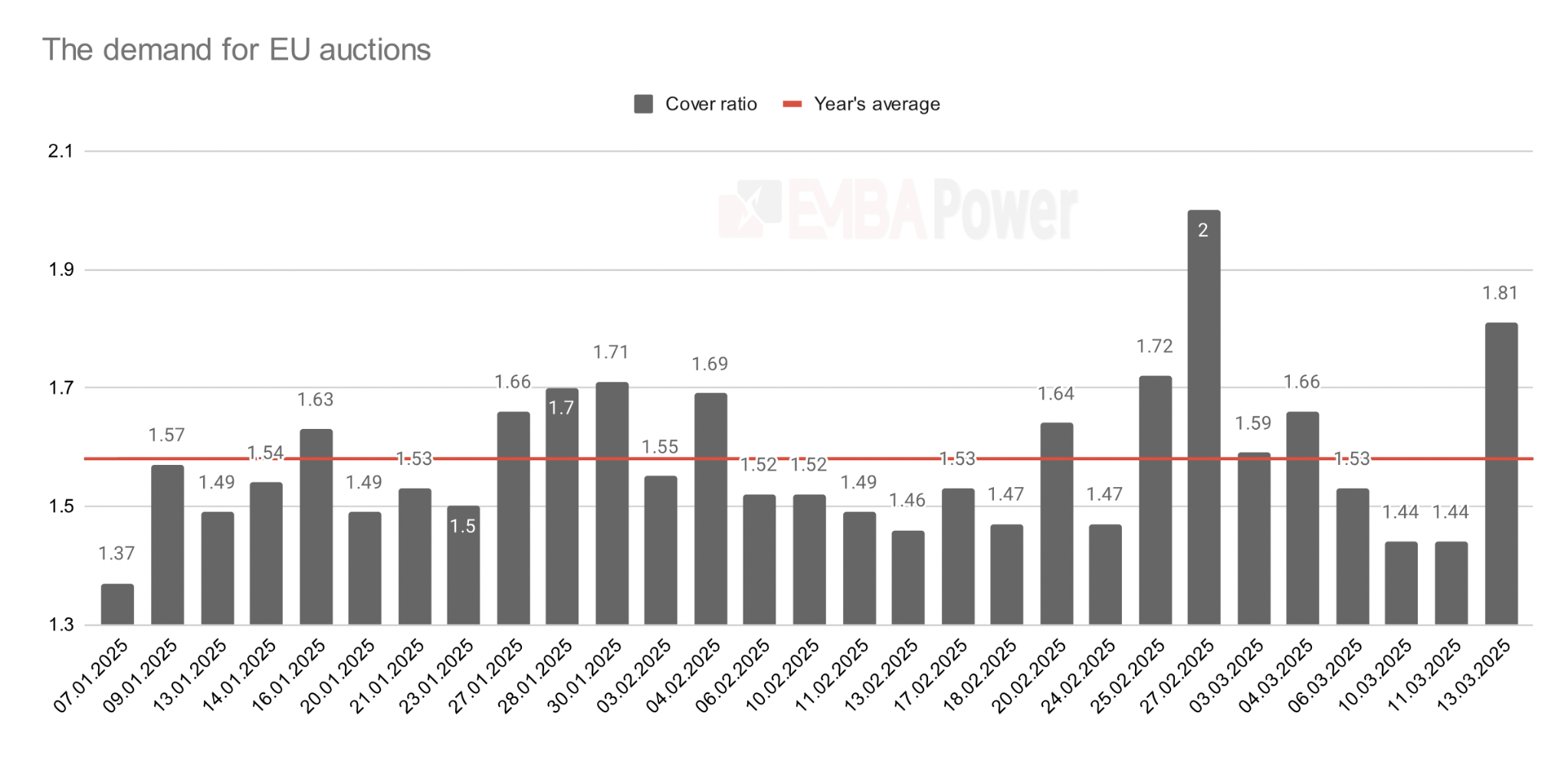 Rata de acoperire a fost de 1,81, a doua cea mai mare inregistrata in acest an pentru o licitatie din partea acestor state, ceea ce sugereaza un interes mare pentru cumparare. Volatilitatea de pe piata de carbon s-a datorat si apropierii scadentei pentru contractele de optiuni in luna mai, in conditiile in care traderii isi acopera pozitiile facute pentru anumite niveluri de pret.