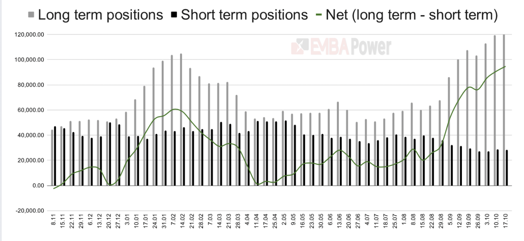 According to the latest Commitment of Traders report just released by ICE, investment funds participating in the European carbon market raised their net long positions to 94.7 million allowances in the week ending October 17, marking a 4.3% increase compared with the previous week.