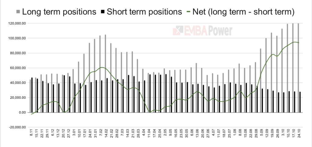 As of 24 October, investment funds’ net long positions eased modestly, according to the latest ICE Commitment of Traders report. The data indicate that speculative investors have begun to scale back their bullish exposure to carbon prices, marking the first decline in long positioning this month.